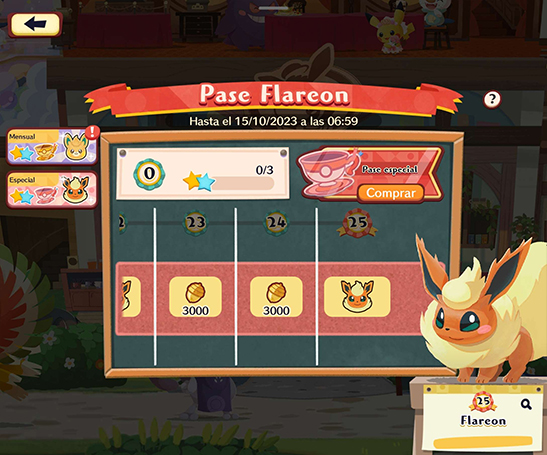 Los premios de este pase son Flareon y 30.000 Bellotas.