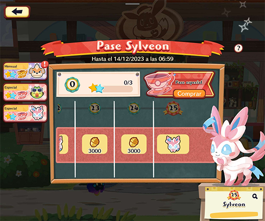 Los premios de este pase son Sylveon y 30.000 Bellotas.