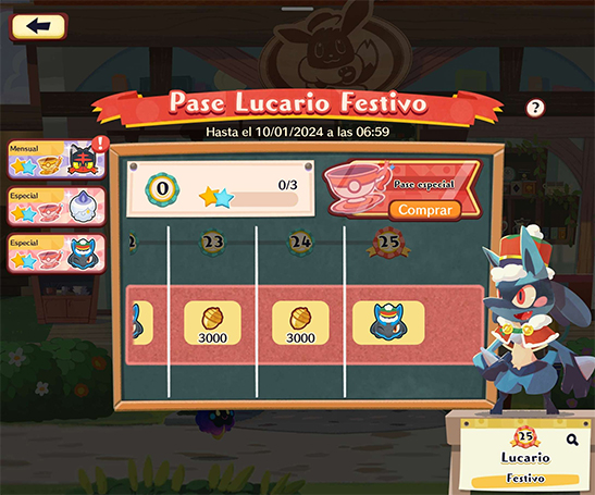 Los premios de este pase son Lucario Festivo y 30.000 Bellotas.