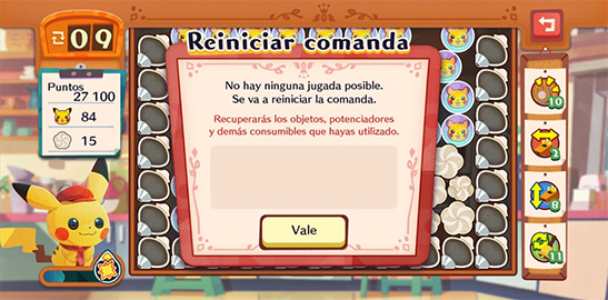 Si una Comanda queda totalmente bloqueada por no poder usar ningún objeto o ayudita ni mover Fichas de Pokémon, la comanda se reinicia y recuperas todos los potenciadores y ayuditas que hayas usado en esa comanda.