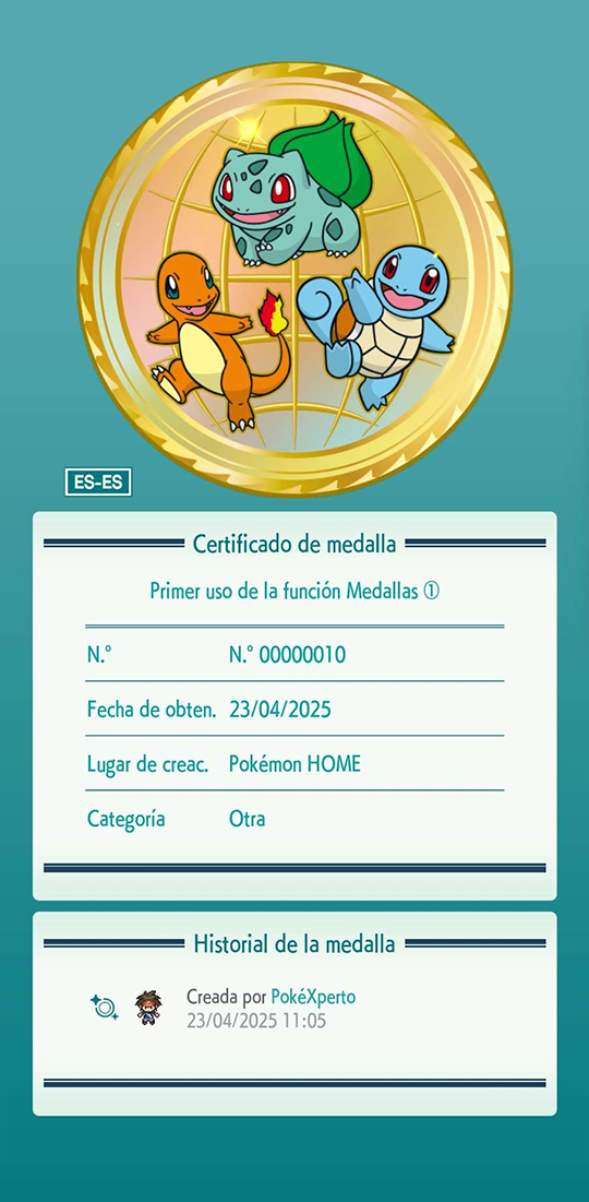 Las Medallas NFT disponibles en Pokémon HOME son las siguientes: