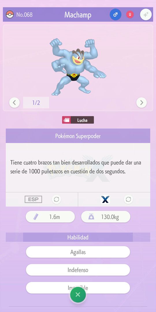 - Pokémon: Puedes ver todas las versiones de género, variocolor, Megaevolución y otras formas de cada Pokémon (salvo Gigamax).