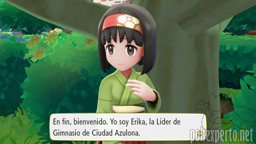 Medalla Arcoíris:Para conseguir la Medalla Arcoíris, tendrás que derrotar a la Líder Erika en el Gimnasio de Ciudad Azulona. Al ganar el combate, recibes la medalla y la MT53 (Megaagotar). Tras derrotar al Alto Mando, podrás enfrentarte de nuevo a ella. En esta ocasión, contará con un equipo más numeroso, de más nivel, etcétera. Requisito para acceder: Lleva en tu Equipo un Pokémon bonito (con Pikachu o Eevee tienes suficiente).