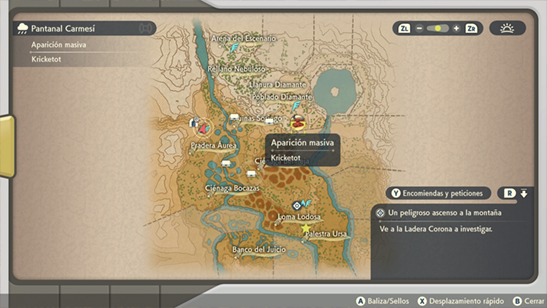 Tras completar la encomienda La furia del Seńor de los Bosques y llegar por primera vez al Pantanal Carmesí, el Móvil Arceus comienza a avisarte de Apariciones Masivas de Pokémon en una zona concreta de Hisui por un tiempo limitado.