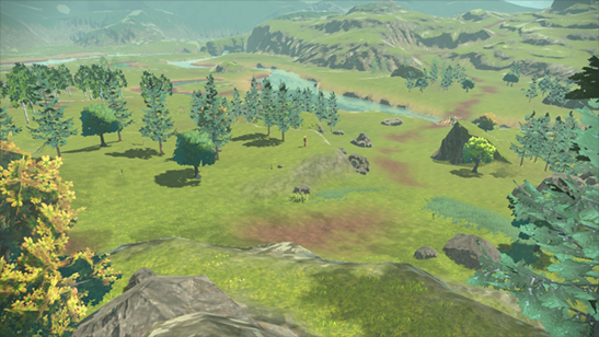 La Pradera Obsidiana es la primera zona que visitas de la Región de Hisui. Se trata de una zona de praderas, campos de flores, bosques y ríos.