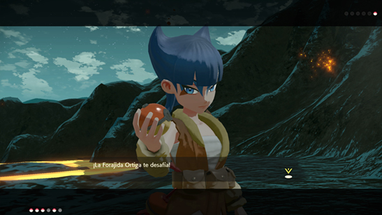 Jara te reta a un combate en la encomienda Una isla sin seńor, donde han secuestrado a Growlithe de Hisui en la Isla Escupefuego: