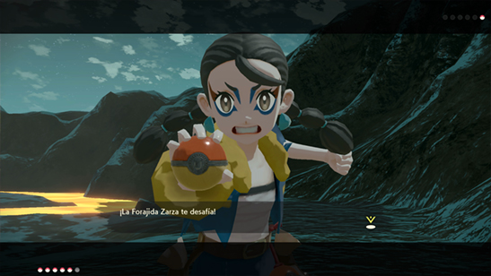 Tras pasarte el juego, Jara puede aparecer en algunas zonas de Hisui y te reta a más combates cada vez que la encuentras: