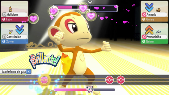 Si consigues encadenar el movimiento de gala de tu Pokémon con el de otro participante, realizas un combo y consigues más puntos de gala.