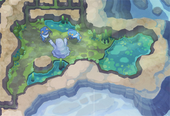 La Caverna Insondable cuenta con Pokémon del Bioma Pantano (Caverna Insondable, Cueva Lodazal, Cueva Pantanosa):