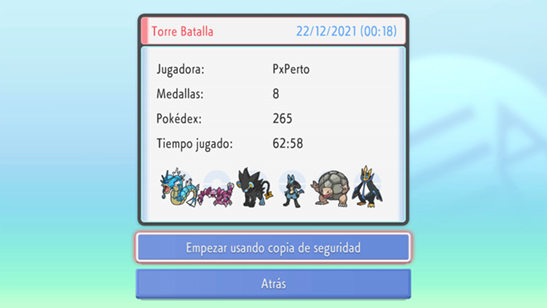 - Copia de Seguridad: Si algún problema ocurriera, puedes acceder a la copia de seguridad de tu partida (la anterior a la última guardada) pulsando Arriba B X en la pantalla de inicio del juego.