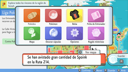 - Tras salir de la Liga Pokémon, coloca el cursor en el Centro Pokémon de la Liga Pokémon anterior a la Calle Victoria y Pulsa A y X.