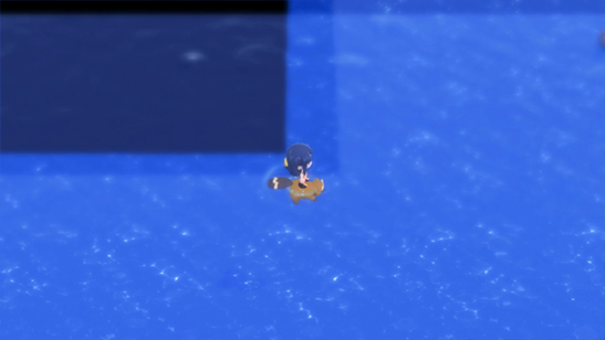 - Finalmente llegarás a un punto en el que no puedes avanzar. Presiona A para usar Surf de nuevo y avanza hacia la derecha.