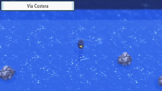 - Cuando llegues al punto indicado en la imagen, sube hacia arriba y el personaje dejará de hacer Surf por haber entrado en la Vía Costera.