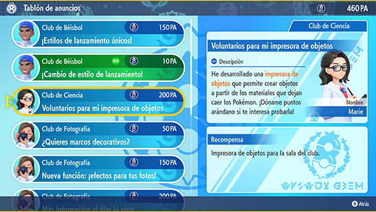 En el Club de Ciencia puedes obtener la Impresora de Objetos con la ayuda de su líder Marie: