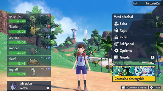 Puedes acceder a este contenido desde la nueva opción de Contenido Descargable disponible con la Versión 1.2.0 de Pokémon Escarlata y Púrpura.