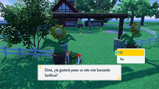 Los Sunflora se encuentran escondidos por el pueblo, y algunos están en árboles por lo que debes hacerlos caer y te obligan a combatir contra ellos. Una forma sencilla de encontrarlos es escuchar sus gritos al estar cerca.