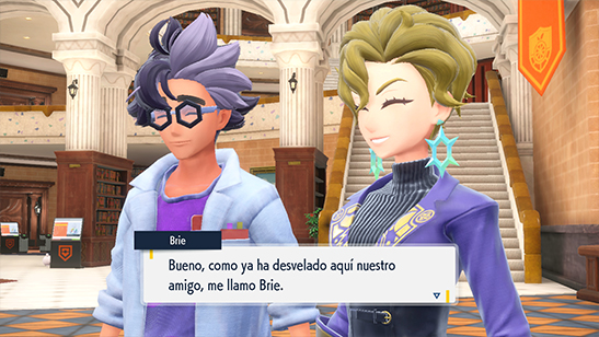 • Academia: Ve a la Academia de Paldea. En el vestíbulo de entrada te espera el Profesor Cinio con una desconocida.