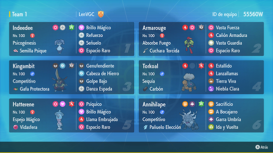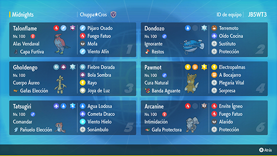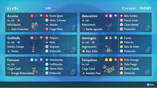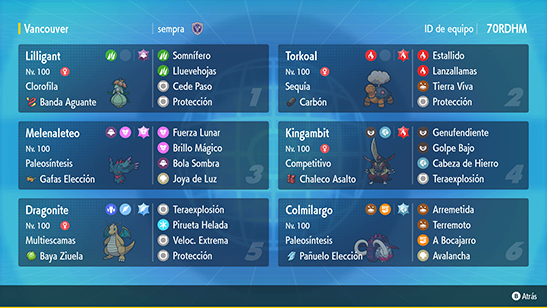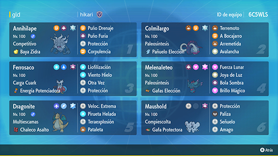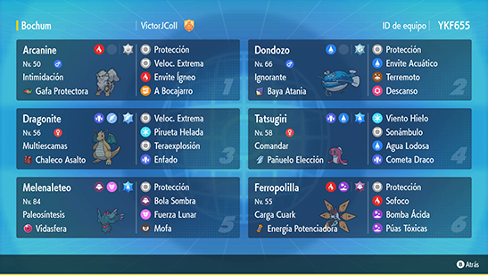 - Equipo: Equipo de Combate que contenga entre 4 y 6 Pokémon.