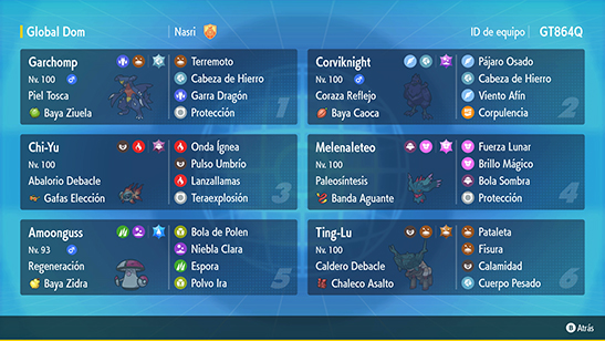 - Equipo: Equipo de Combate que contenga entre 4 y 6 Pokémon.