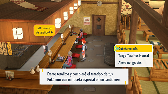 Puedes cambiar el teratipo de cualquier Pokémon hablando con la cocinera del Mesón El Tesoro de Pueblo Mestura tras superar el Gimnasio de Pueblo Mestura en la Travesía de la Victoria.