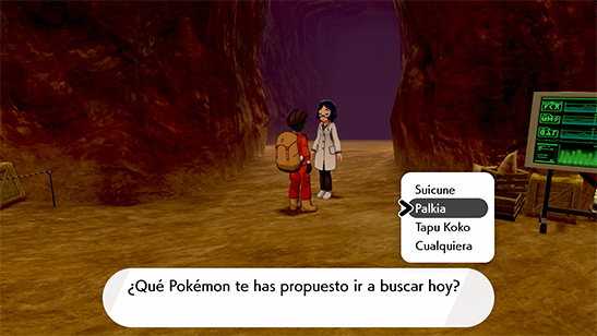 El Pokémon es determinado al azar, pero si llevas un Pokémon Legendario en la primera posición de tu equipo cuando hablas con ella, te dará la pista de ese Pokémon.