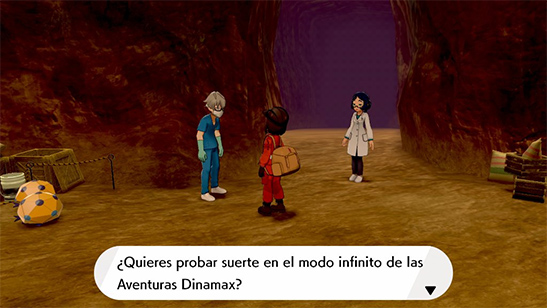 Los jugadores pueden formar un grupo de hasta 4 Entrenadores para embarcarse en una Aventura Dinamax, en la que se adentran en los Nidos Pokémon que te encuentres bajo tierra de las Nieves de la Corona