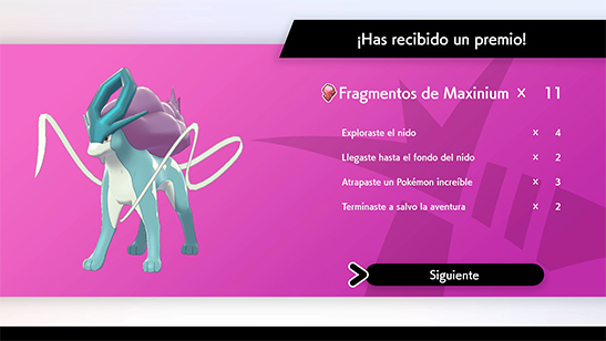 Al final de la Aventura Dinamax recibes Fragmentos de Maxinium por objetivos como los siguientes: