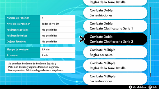En el Estadio de Combate de Pokémon Espada y Escudo puedes participar en Combates Clasificatorios. Pueden ser Combates Individuales y Dobles.