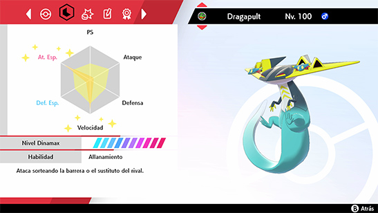 Para ver con detalle el nivel de Esfuerzo de tus Pokémon en cada uno de sus stats, puedes pulsar X en la pantalla de datos para ver un gráfico con su reparto marcado en color amarillo.