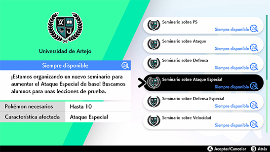 Los Seminarios de la Universidad de Artejo (unos Poké Encargos que siempre están disponibles) te ayudan a entrenar el Esfuerzo de hasta 10 Pokémon al mismo tiempo.