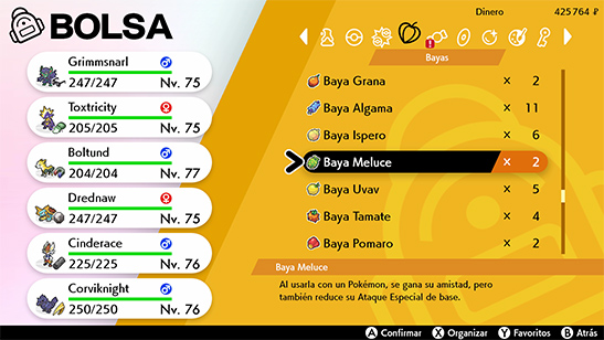 » Las puedes recoger de Árboles de Bayas por todo Galar (mira la Lista de Bayas para más detalles). Son las siguientes: