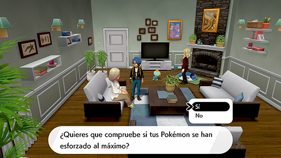 Una seńora que vive en la casa al este del Centro Pokémon (central) de Ciudad Artejo evalúa el esfuerzo de tus Pokémon. Puedes elegir cualquier Pokémon de tu equipo o de las Cajas del PC.