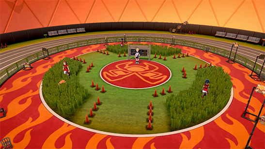 - Prueba del Gimnasio: La prueba consiste en superar varias zonas de caída libre sobre una plataforma que puedes controlar girando el Joystick en un sentido o en otro, aprovechando los guantes de boxeo para recuperar impulso. Por el camino tendrás que derrotar a varios Entrenadores.