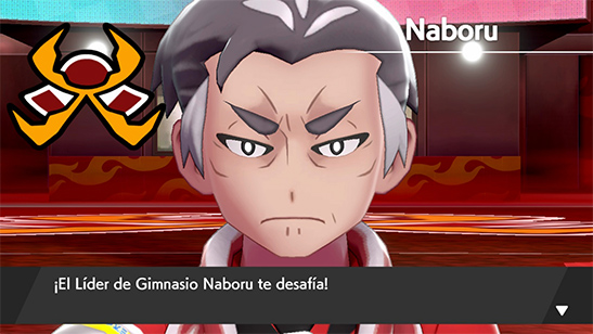- Líder del Gimnasio: Tras superar la prueba te enfrentas al Líder Naboru. Naboru gigamaxiza a su Centiskorch en cuanto puede. Su equipo es el siguiente:
