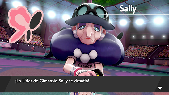 - Líder del Gimnasio: Tras superar la prueba te enfrentas a la Líder Sally. Sally gigamaxiza a su Alcremie en cuanto puede y hace preguntas: El sobrenombre de Sally es La Hechicera (The Wizard), su color favorito es el violeta (purple) y debes contestar que tiene 16 ańos (si pregunta). Su equipo es el siguiente: