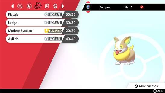 - Movimiento: Estos Pokémon conocen un Movimiento Huevo, que normalmente sólo aprenden mediante crianza.