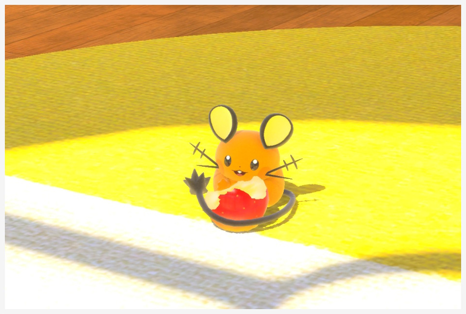 Mientras bebe del abrevadero Tirar Blanzanas a los Starly posados en el árbol y al final aparece un Starly entre las flores, al cual si lanzas una Blanzana se pone a dar saltos a su alrededor |