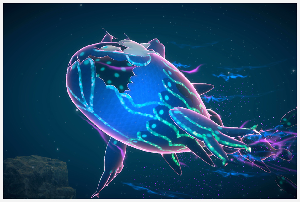 Debes lanzarle Blanzanas para que salga del agua y así poderle lanzar Orbes Lúmini para hacer una foto y que el Profesor Espejo la analice.