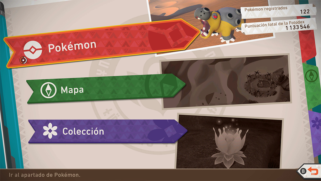 - Pokémon: La sección principal de la Fotodex almacena la Lista de Pokémon que hayas ido descubriendo en tu aventura.
