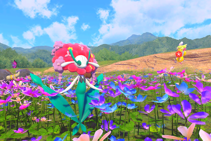 Parece que a algunos Pokémon les gusta jugar al escondite en el campo de flores. Si los ves, sácales una foto para enseñármela luego.
