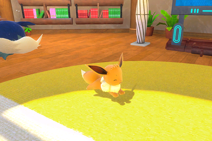 Saca una foto de Eevee jugando con otros Pokémon dentro del laboratorio. Debes atraer a otros Pokémon a él y usar Orbe Lúmini.