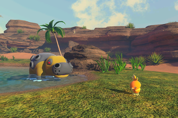 Saca una foto de Torchic montando en Hippowdon en el oasis. Para ello debes atraerlos con Blanzanas.