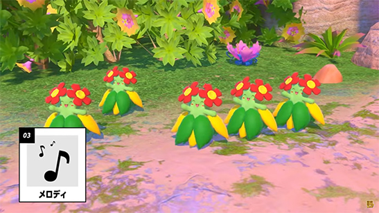 Puedes hacer sonar una Melodía para que algunos Pokémon reaccionen con alegría y se pongan a bailar, dando oportunidad de realizar nuevas fotos.