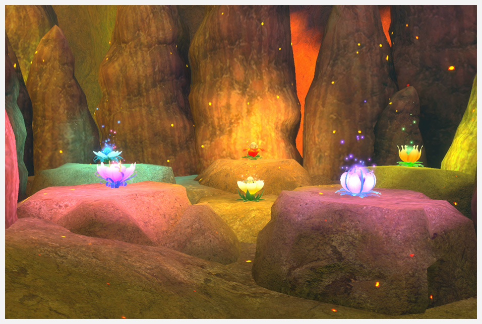 Enciende las Cristaflores al lado de las cinco estatuas y la Cristaflor del final para activar el Pilar de Luz, y luego mira detrás de ti |