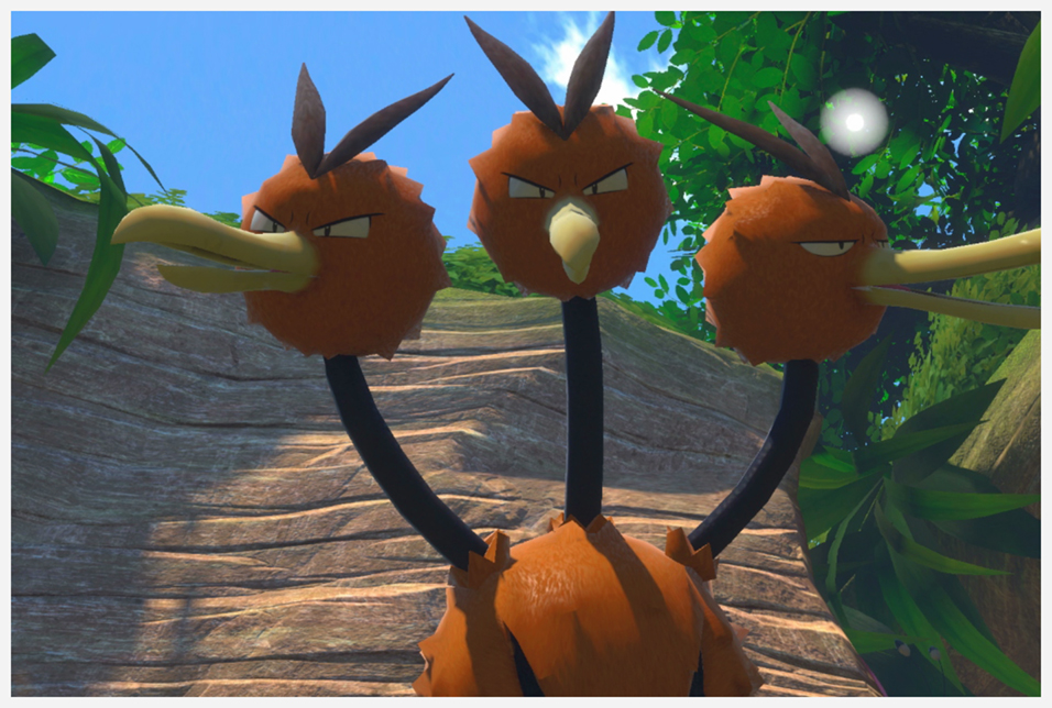 Asustado al ver acercarse a Dodrio al comienzo de la zona Asustado por Dodrio tras salir del segundo tronco Asustado encima de Torterra al ver a Dodrio |