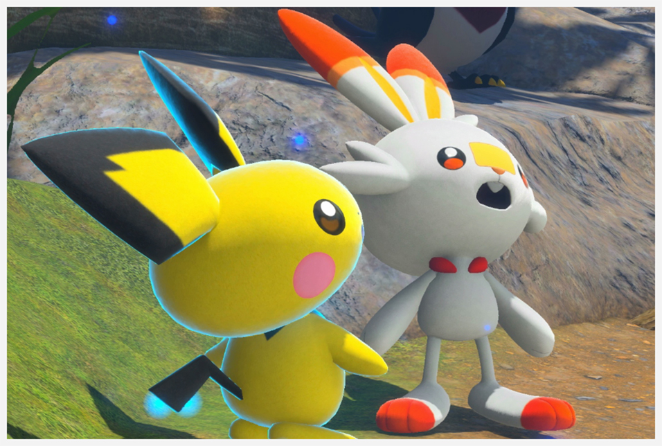 Tras hacer huir a Dodrio, mientras Scorbunny y Pichu saltan de alegría |