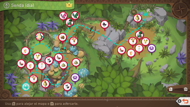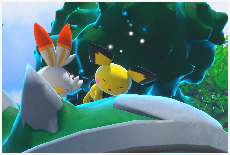 Al agacharse buscando a Scorbunny y Pichu al comienzo de la zona Asustando a dos Comfey tras la hierba al comienzo de la zona (mejor por la ruta del Nido de Snorlax) Mirando por un agujero hacia abajo en el primer tronco |