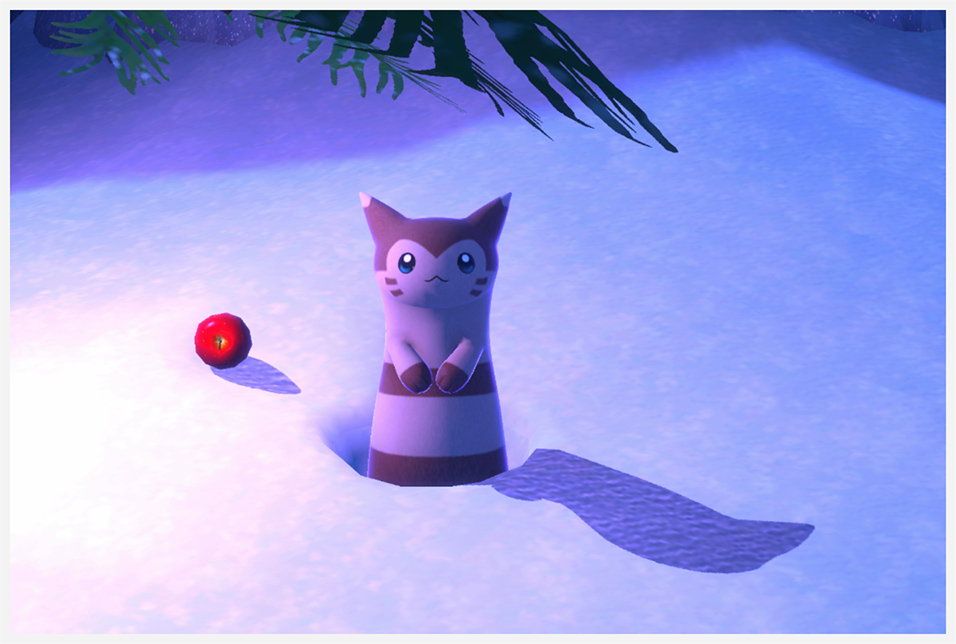 Investigando dentro del tronco al inicio de la zona Rugiendo al ver a Piplup al comienzo de la zona Tirar Blanzana para que deje de acosar a Piplup´ En lo alto de la montańa a la derecha de la zona al otro lado del muro de nieve |