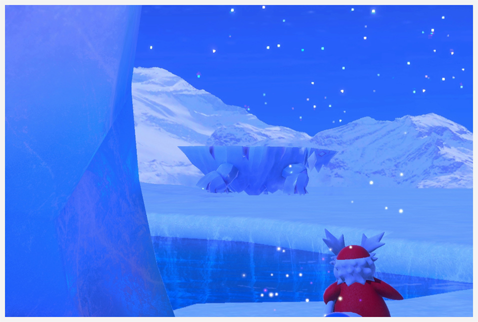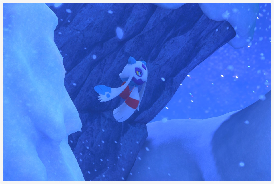 - Cueva de Hielo: Esta zona oculta se desbloquea usando Orbe Lúmini en el Crabominable al comenzar la ruta del Otro Lado del Muro de Nieve para darle más poder al puńetazo que le va a dar a un árbol. Esto hace que le caiga nieve a un Abomasnow, que llama a Froslass al despertar. Saca una foto de Froslass y este Pokémon descubrirá una cueva a la derecha a la que puedes acceder usando el Radar.