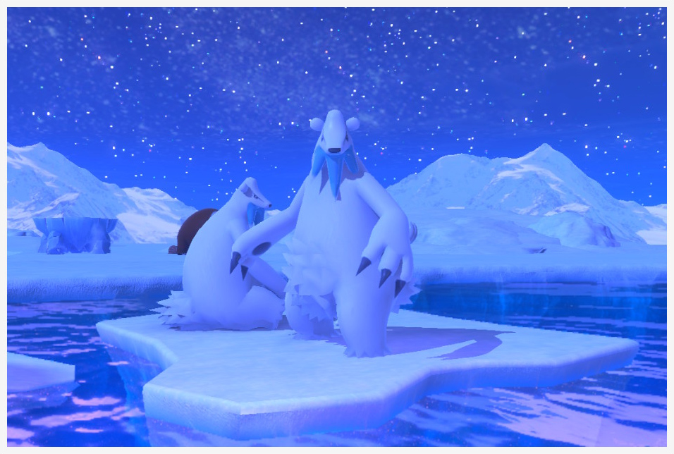 Tirar Blanzana al Beartic dormido en la izquierda al final de la ruta de la Cueva de Hielo y hacer foto cuando te mira Tirar Blanzana a los Beartic que están sentados juntos en la ruta de la Cueva de Hielo y hacer foto cuando está furioso |